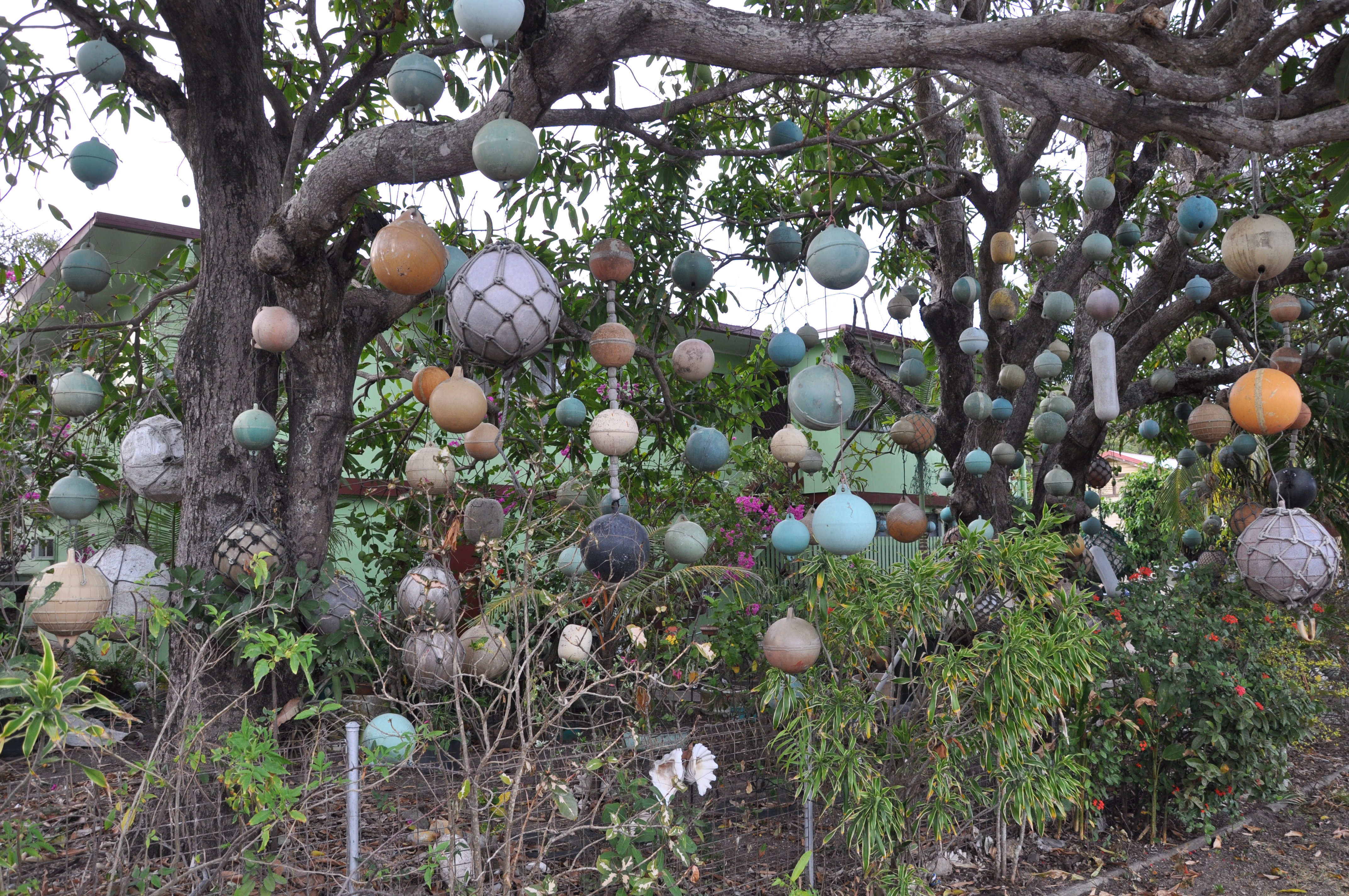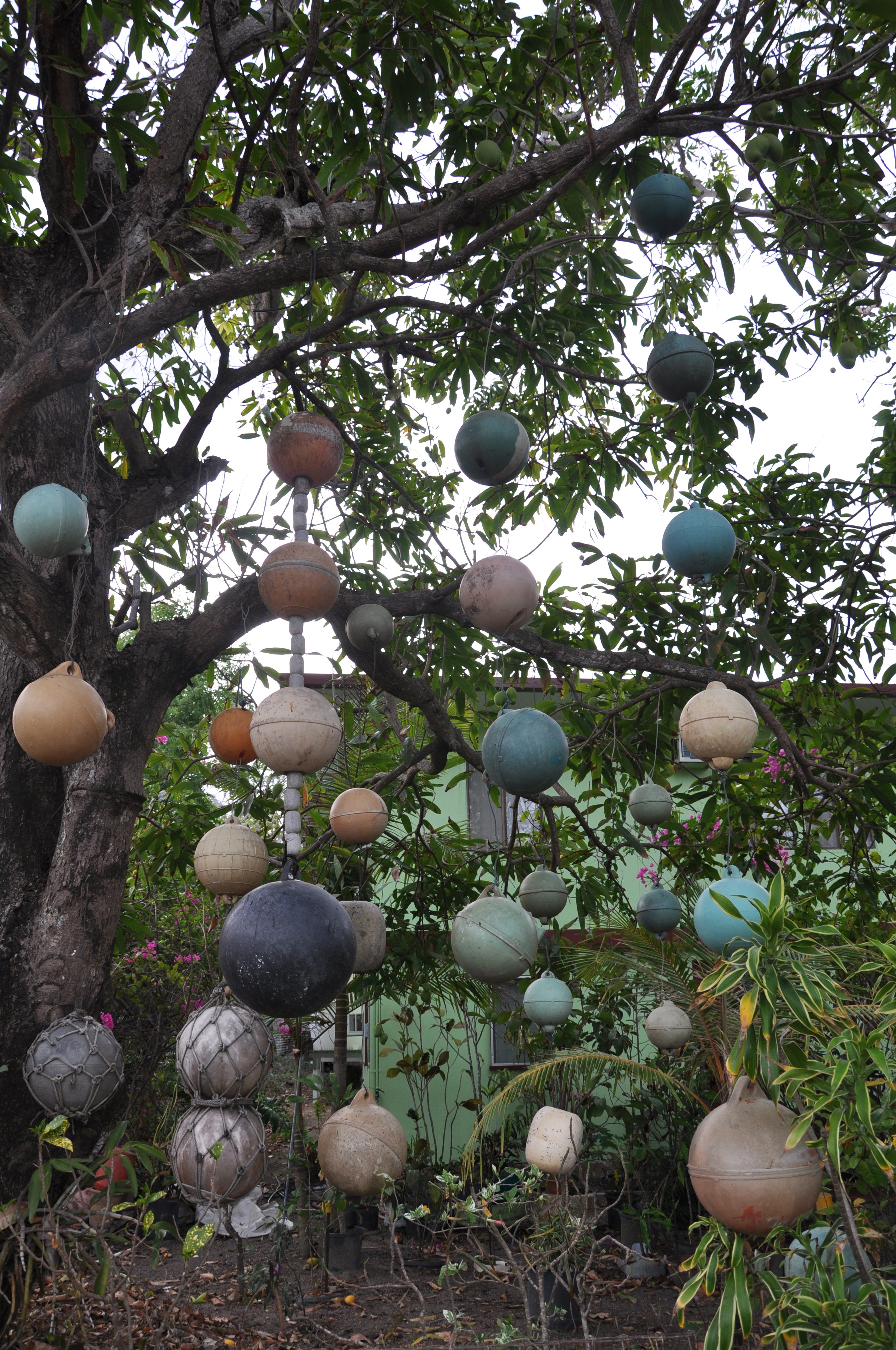 Here’s a couple of pictures I took up on Thursday Island last month. I just loved the idea that the floats suspended from these trees were hanging there for no other reason than that they looked good. And yeh, they looked good. I was reminded of the architect Kevin O’Brien’s installation from the Brisbane South Bank, Torres Strait Island show in 2011, his installation of floats representing his family tree over generations was memorable – place, home, family, contemporary interpretation. Something that so many of the 80% of islanders who have migrated south could identify with.