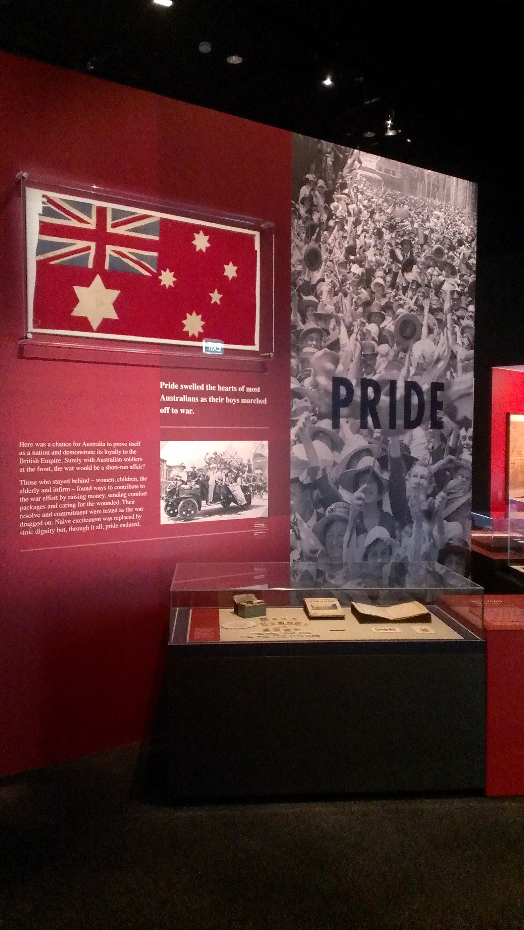 The stories in the exhibition have been arranged along emotional themes, the reasoning for that is that emotions are what connect people to the stories and as a national institution whose motto is Where Our Stories Come Alive, I feel we have an unwritten responsibility to tap the emotions of Australian history. Another of Wendy Osmond’s key contributions was to make the Pride module the central piece to the exhibition – without pride – either in Australia or as members of the British Empire, the nation never would have gone to war. In a way the war fed off pride.